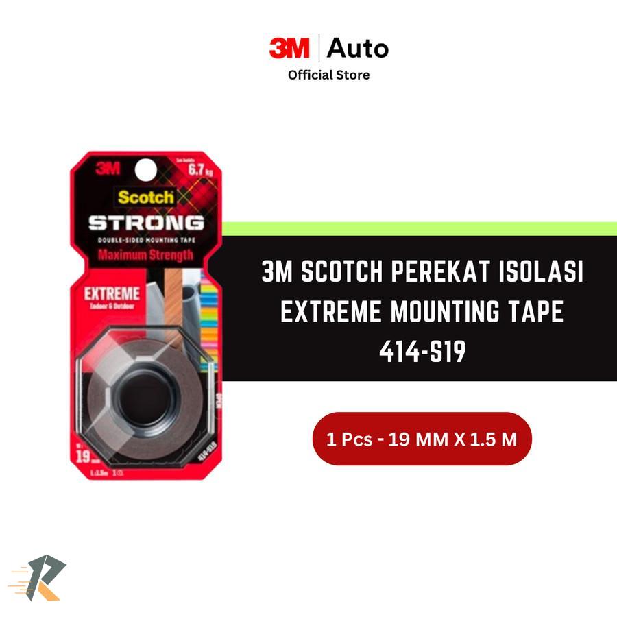 Scotch™ Extreme Double-Sided Mounting Tape 414-S19, merupakan Perekat Serbaguna berukuran 19 mm x 15 m, dengan kekuatan maksimum di berbagai permukaan.• Menempel secara permanen• Dapat digunakan baik dalam atau luar ruangan• Menahan beban hingga 6,7 kg/1 meter lebar 19 mm• Tidak perlu menggunakan paku atau sekrup• Cocok di gunakan pada berbagai permukaan• Tahan terhadap berbagai cuaca (tahan terhadap sinar UV, suhu, dan air)