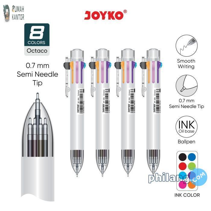 Ball Pen Pulpen Pena Joyko BP-384 Octaco 0.7 mm 8 Warna Colors