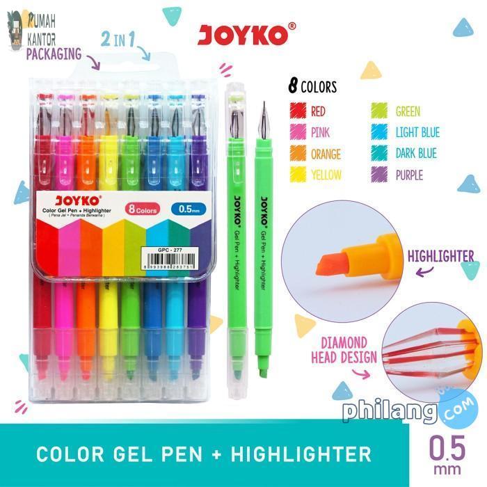 Color Gel Pen Pena Jel + Highlighter Penanda Joyko GPC-277 8 Warna