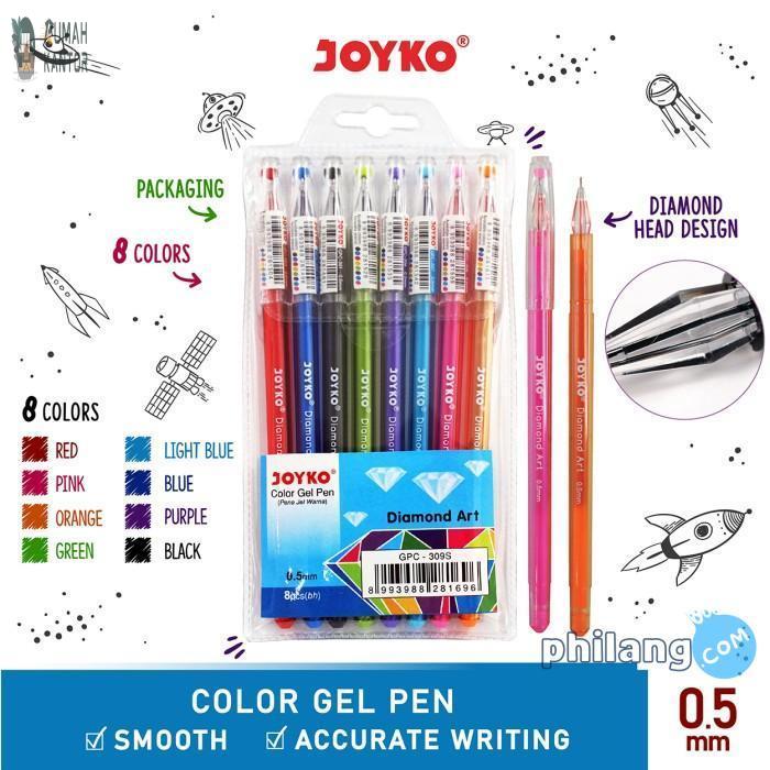 Color Gel Pen / Pulepen / Pena Joyko GPC-309S / 1 Set 8 Warna / 0.5 mm