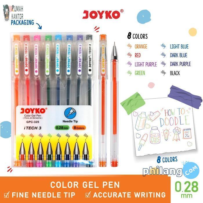 Color Gel Pen Pulpen Pena Joyko GPC-325 iTech3 1 Set 8 Warna 0.28 mm