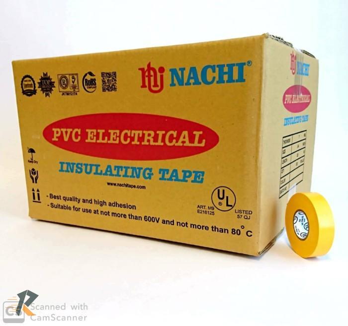 (Dus) Nachi PVC Electrical Tape Isolasi Listrik 19 mm x 20meter Kuning