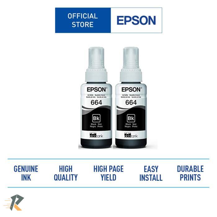 Baru!! Tinta T664193 Black Genuine Epson TWINIsi 2 botol 70mlTinta untuk tipe:L100, L110, L120, L200, L210, L220, L300, L310, L350, L355, L360, L361, L365, L380, L385, L455, L485, L550, L555, L565, L1300
