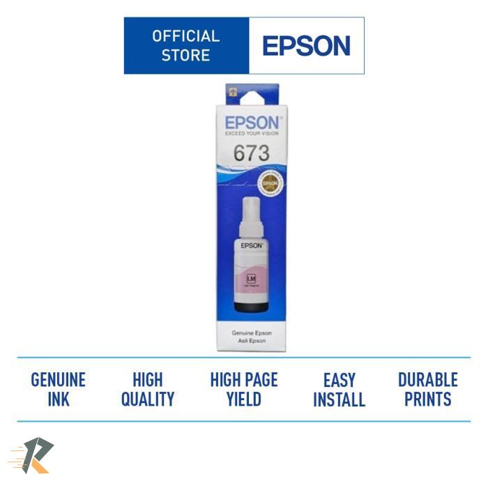 Detail produk dari Epson Tinta T6733 - Light Magenta Epson Tinta T6733 - Light Magenta adalah tinta Light Magenta yang dpakai untuk printer inktank epson.Tinta original epson ini tahan noda dan tidak mudah pudar dan tahan lama. Untuk mendapatkan hasil cetak yang bagus gunakan selalu tinta epson original ini. Tinta Epson ini digunakan untuk mencetak dokumen dan gambar dengan kualitas yang bagus. Performa Mencetak dokumen maupun gambar dengan kualitas yang bagus dan terjamin. Epson Tinta T6733 - Light Magenta original ini dirancang tidak merusak head printer dan untuk pengisian tinta sangat mudah dan fleksibel. Dengan tinta epson yang original biaya cetak dokumen relatif lebih murah. Untuk tinta ini hasil warnanya lebih bagus karena printer tipe ini sudah memakai 6 tinta printer. Kompatibilitas Epson Tinta T6733 - Light Magenta ini dapat digunakan untuk printer Epson Inktank L800, L1300 dan L1800