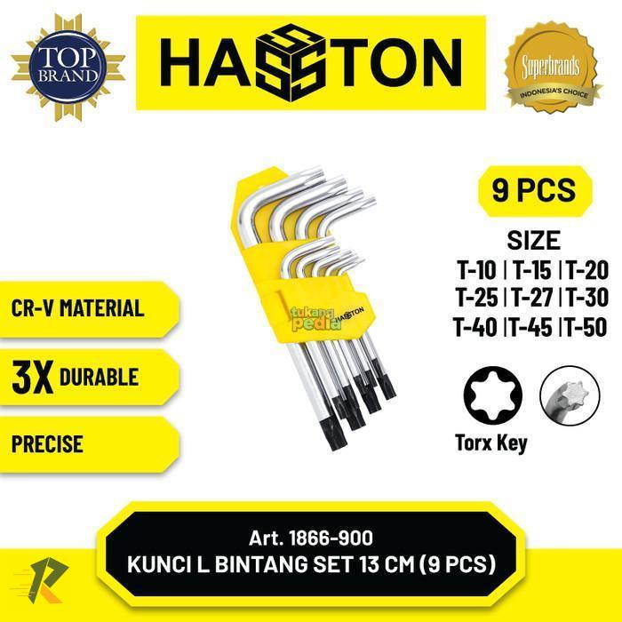 Hasston Kunci L Bintang 18cm T10-T50 (9Pcs) / Torx Hex Key (1866-901) - Panjang 13cm