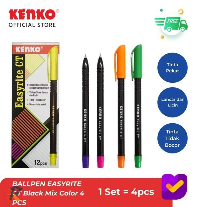 KENKO BALLPEN / PULPEN / PEN / PENA EASYRITE CT Black Mix Color 4 PCS