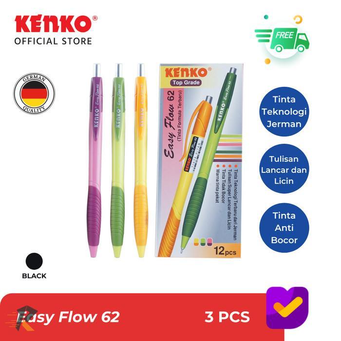 KENKO BALLPEN / Pulpen / Pena Cetek Easy Flow 62 Mix Color 3 PCS