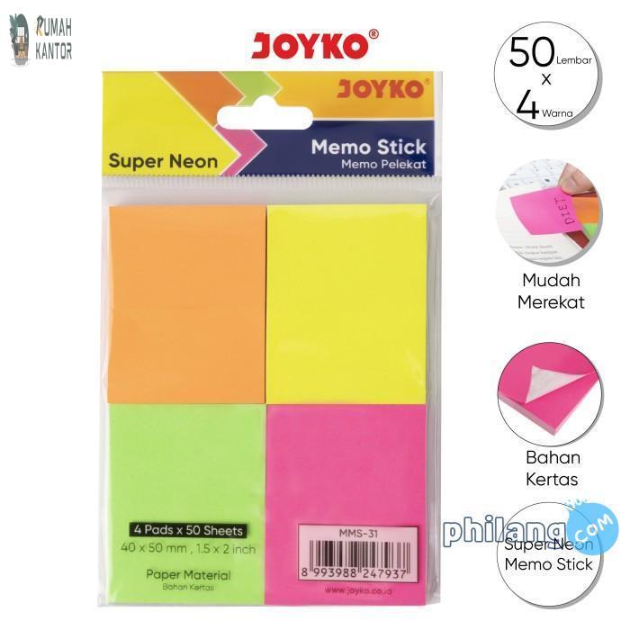Memo Stick Sticky Note Kertas Memo Tempel Joyko MMS-31 Super Neon