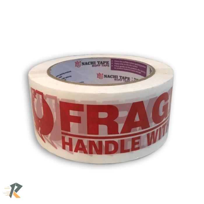 Nachi Tape Lakban Opp Printed Tape FRAGILE 48 mm x 90 yard Putih Susu