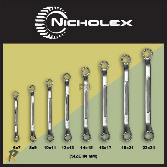 Seluruh kunci ring Nicholex terbuat dari bahan Chrom Vanadium, dicetak dengan ukuran yang PRESISI sesuai size yang tertera pada body kunci.