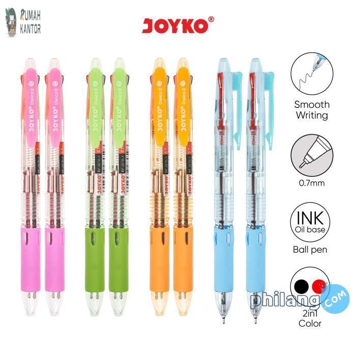 Ball Pen Pulpen Pena Joyko BP-287BLK Dwico2 0.7 mm 2 Warna Hitam Merah
